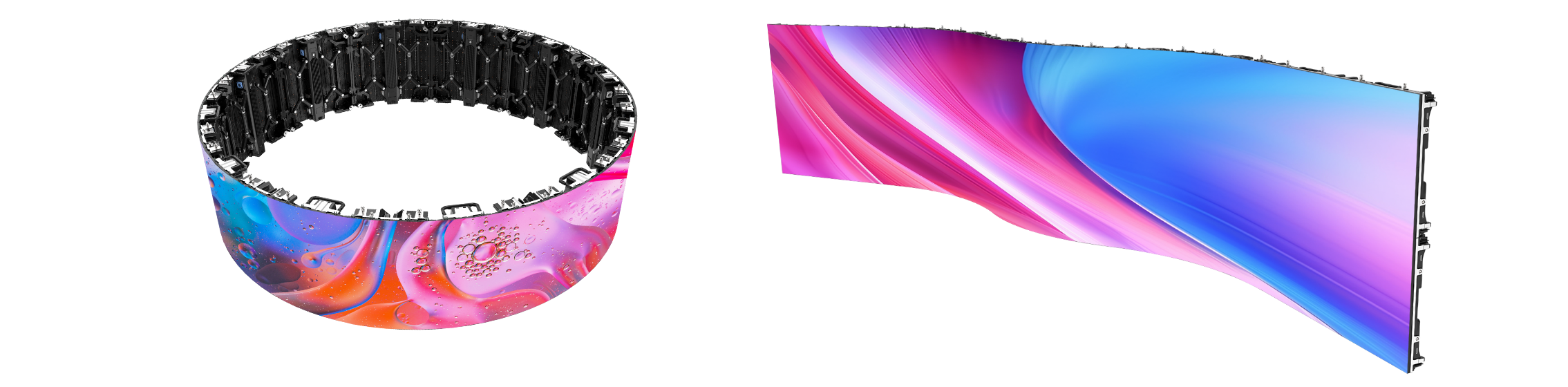 支持弧形安装,最大角度:±30°,单个箱体可以实现完美的“S”曲线,具有超高的灵活度,无论是大角度的内外弧造型,还是圆柱、90°圆弧直角造型都能轻松打造,多种创意拼接配合不同场景使用。